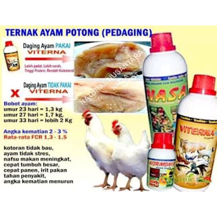Jual VITERNA Vitamin Ternak Nasa dengan harga Rp68000 dari toko online Utama Nasa Surabaya Kota Malang. Meningkatkan daya tahan tubuh ayam dengan cara memberikan VITERNA PLUS POCNASA dan HORMONIK menjadi satu larutan kemudian diberikan pada air minum ayam setiap hari dari DOC sampai panen. Vitamin Ikan lainnya di Tokopedia. Harga Murah di Lapak ORGANIK CANTIK ALAMI OCA NASA.
